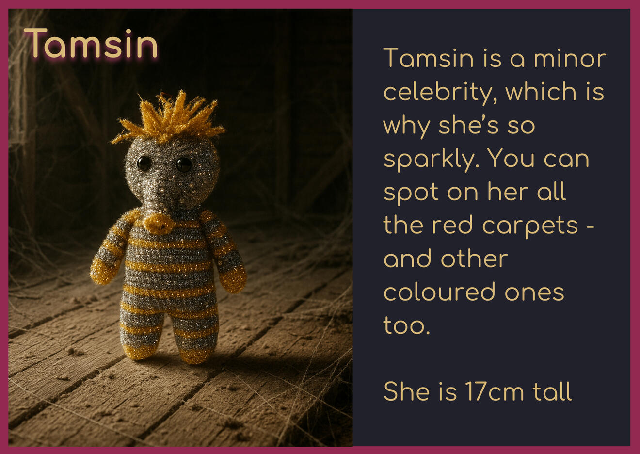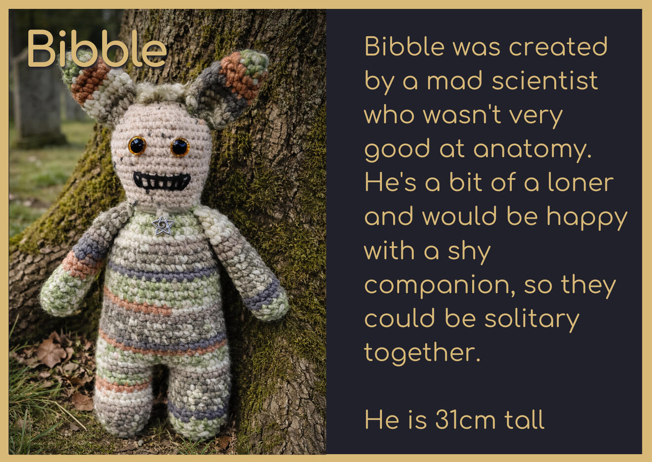 Each creation brings with them a small card with their name and caption story, so you know who they are.PLEASE NOTE: They are not intended as toys