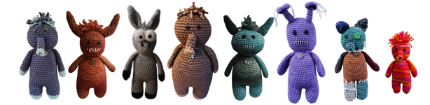 Mischievous crochet creations who love to sneak about causing chaos.They don’t bite (much).
