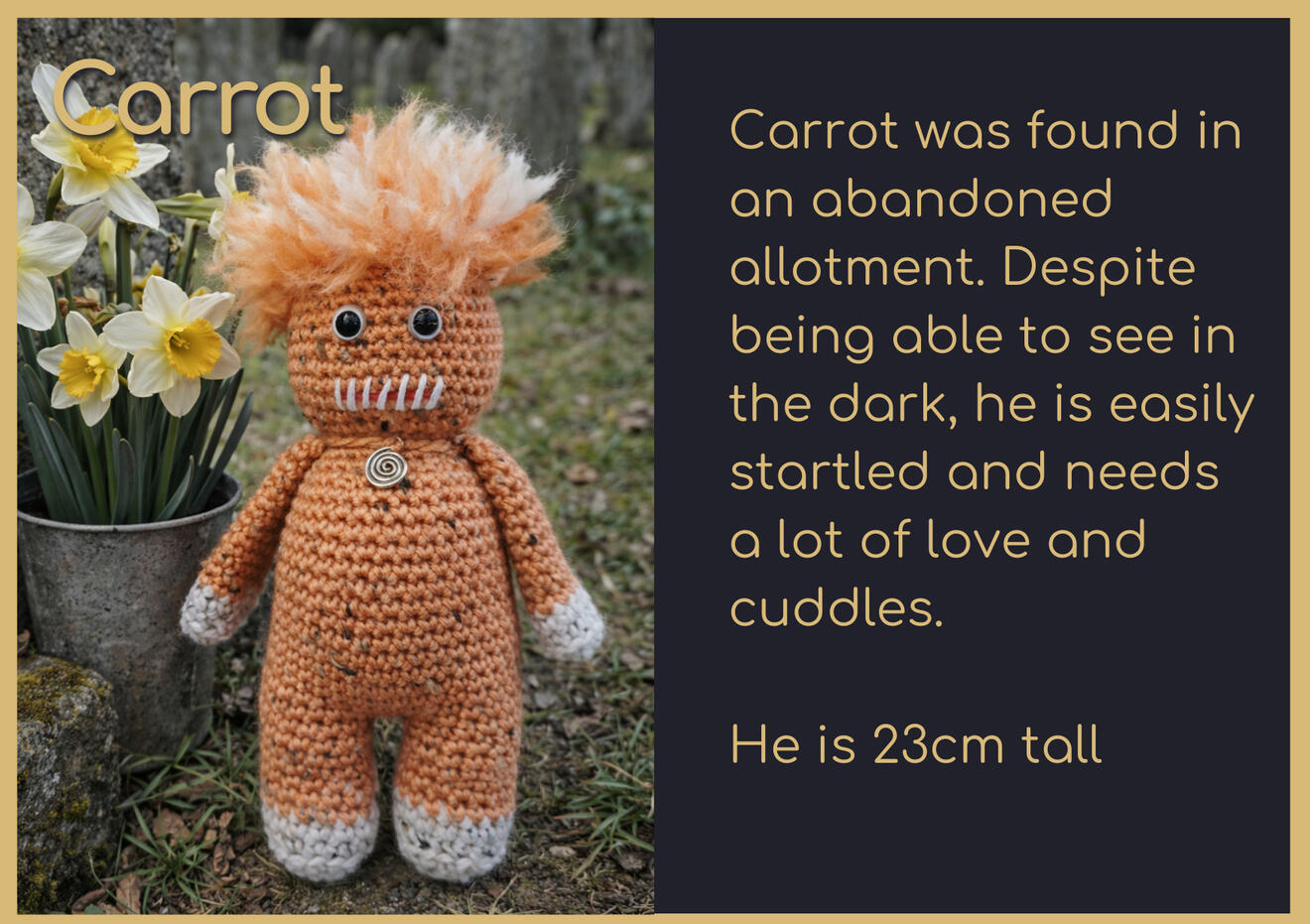 Each creation brings with them a small card with their name and caption story, so you know who they are.PLEASE NOTE: They are not intended as toys